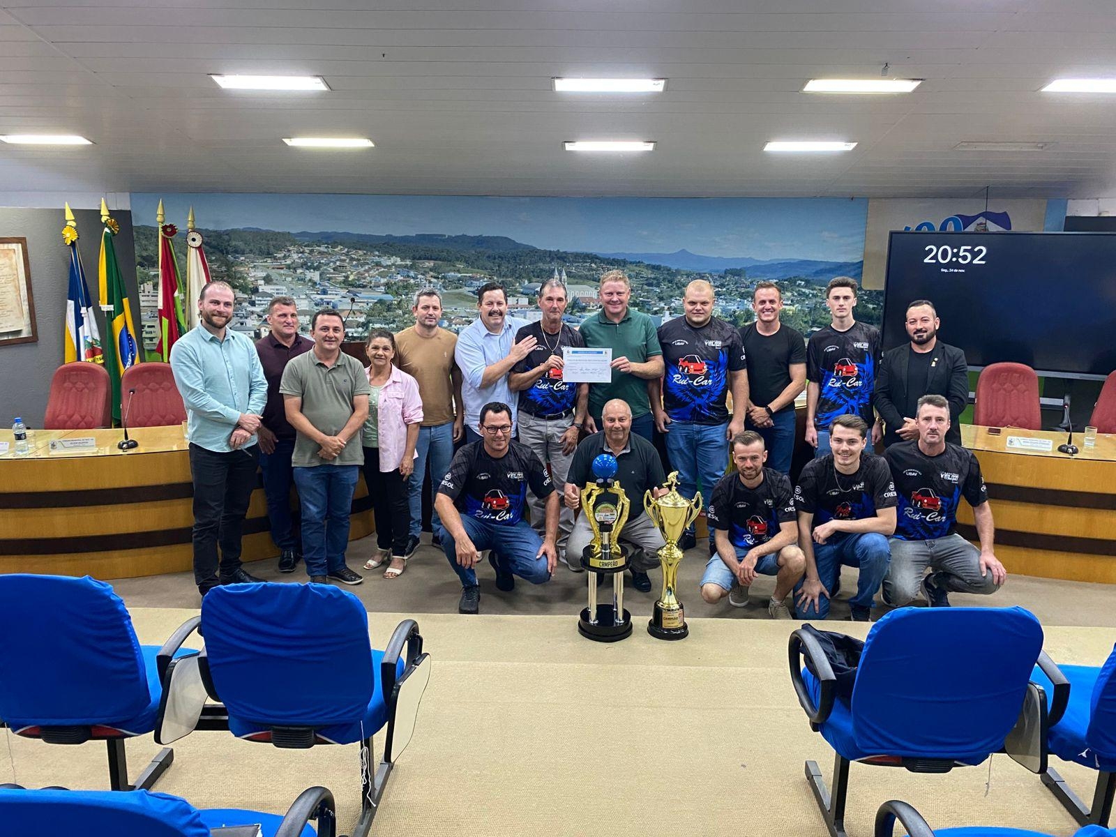 A Câmara de Vereadores de Taió aprovou Moção de Aplausos para a equipe de bocha Bar e Cancha Jacaré, da localidade de Ribeirão do Salto, pelas conquistas em 2025. A equipe foi campeã da Taça Municipal Adalberto Radoll e mais recentemente comemorou o título Campeonato Regional de Bocha. Os troféus foram apresentados durante a entrega da homenagem. A Moção foi sugerida pelos vereadores [...]