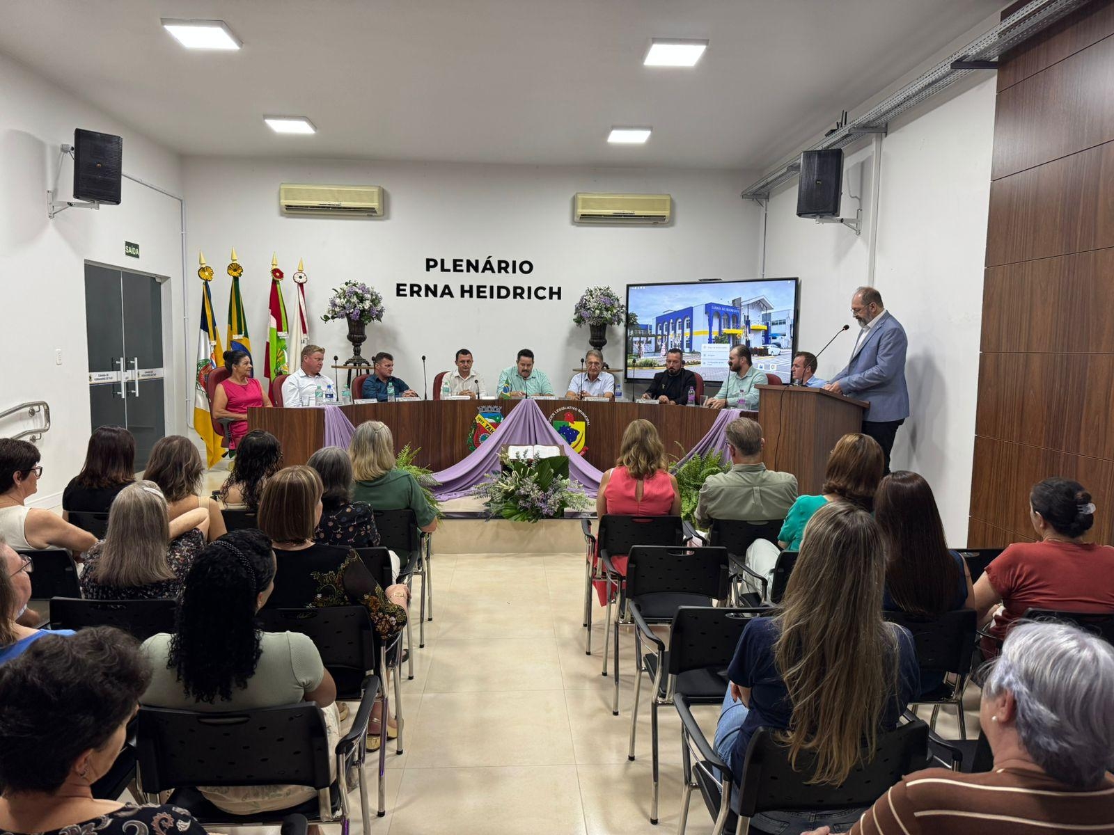 Antes da cerimônia foi realizada a reinauguração do Plenário Erna Heidrich, primeira vereadora eleita em Taió, primeira mulher a presidir o Legislativo taioense e única prefeita eleita do Município. O espaço passou por ampla reforma e contou com ampliação através de uma recepção própria, além da instalação de mobília nova.