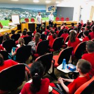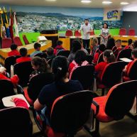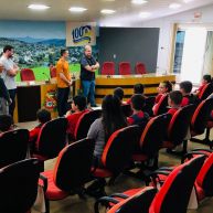 Estudantes acompanharam uma palestra com um dos autores do hino do Município