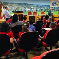 Alunos da Escola Leopoldo Jacobsen visitam a Câmara e aprendem sobre o hino de Taió