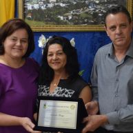 O Título de Cidadão Honorário, destinado às pessoas de destaque nascidas em Taió, foi entregue para o senhor Fiorelo Zanella e às senhoras Carmen Irineide Nunes Fusinato e Maria Leite Viviani.